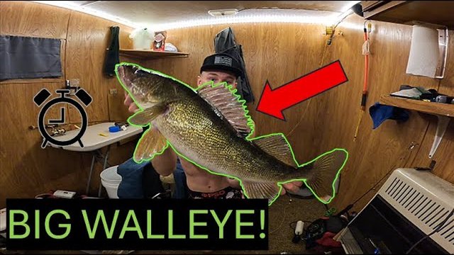Catching BIG WALLEYE late at night! | ICE CAMPING!