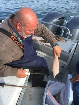 Today we were able to go 55 miles east out of Seward to the outer side of Montague Island. The fishing was better we found fish in 150 FOW and were able to limit out fishing the incoming and outgoing tides.During slack water fishing shut off giving us time to eat lunch and feed seagulls cheesy poofs. 30 was the most ate by one bird today..