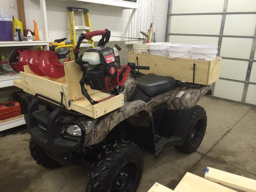 I use the digger and i think its worth it. Super easy/secure and doesn't take up much space on your rack. I mounted the digger as far forward as possible and then made my own wood box to fill up the rest of the rack, no wasted space! Otter box for back of the atv with slide on rod case and bucket holder and you have one lean mean ice fishing machine!