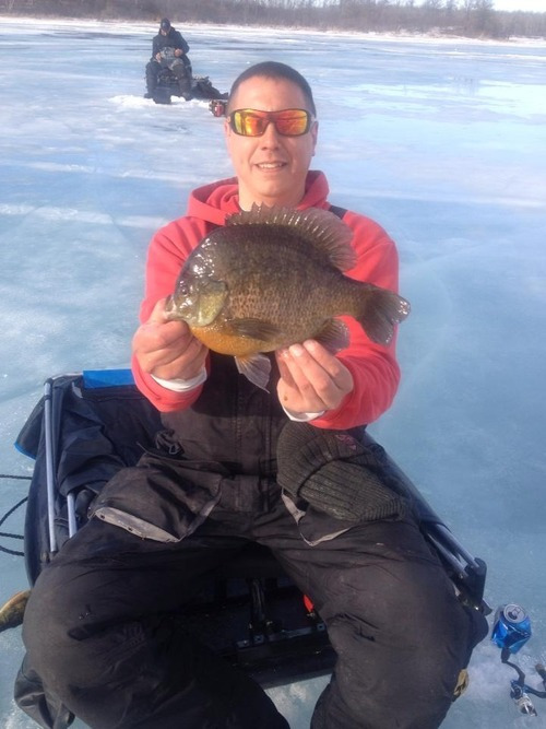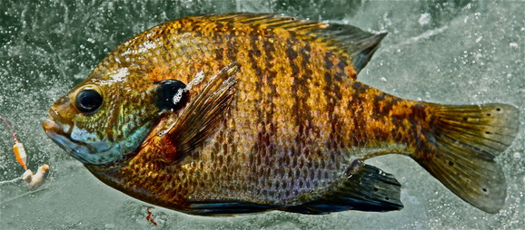 Not a huge 'gil, but a purty one especially since the ice was so clear. Pretty sure Big J caught it, I just took the pic:
