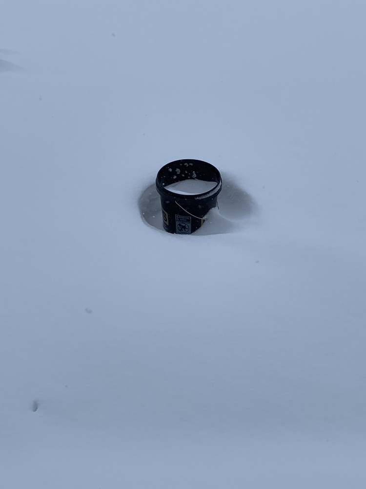 My shin-deep bare foot prints in the snow on my deck, from last night, are mysteriously missing this morning.
