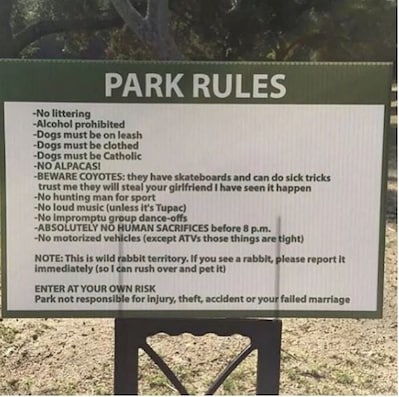I didn't make it past "Alcohol Prohibited". Nothing mattered after that......I wasn't going there anyway.