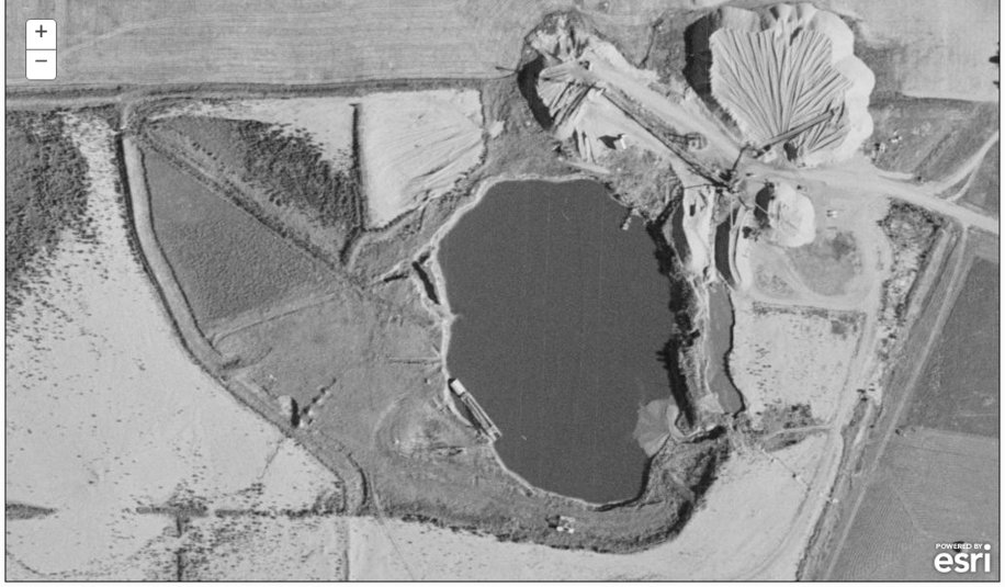 The vast majority of the concrete that got dumped is where the Cottonwood softball fields are now and why they never tried to develop it and instead donated it to the city. If there was any around the lake other then the blocks the size of a single stall garage it had been removed before 1990. The lake stared out as a gravel pit but eventually morphed into who-knows-what. anybody have any idea of exactly what's going on in this picture. thing sort of looks like they are using the water for more or less sluicing the sand and gravel Definitely doesn't look right for a concrete plant. Definitely explains why we have a sandbar though.