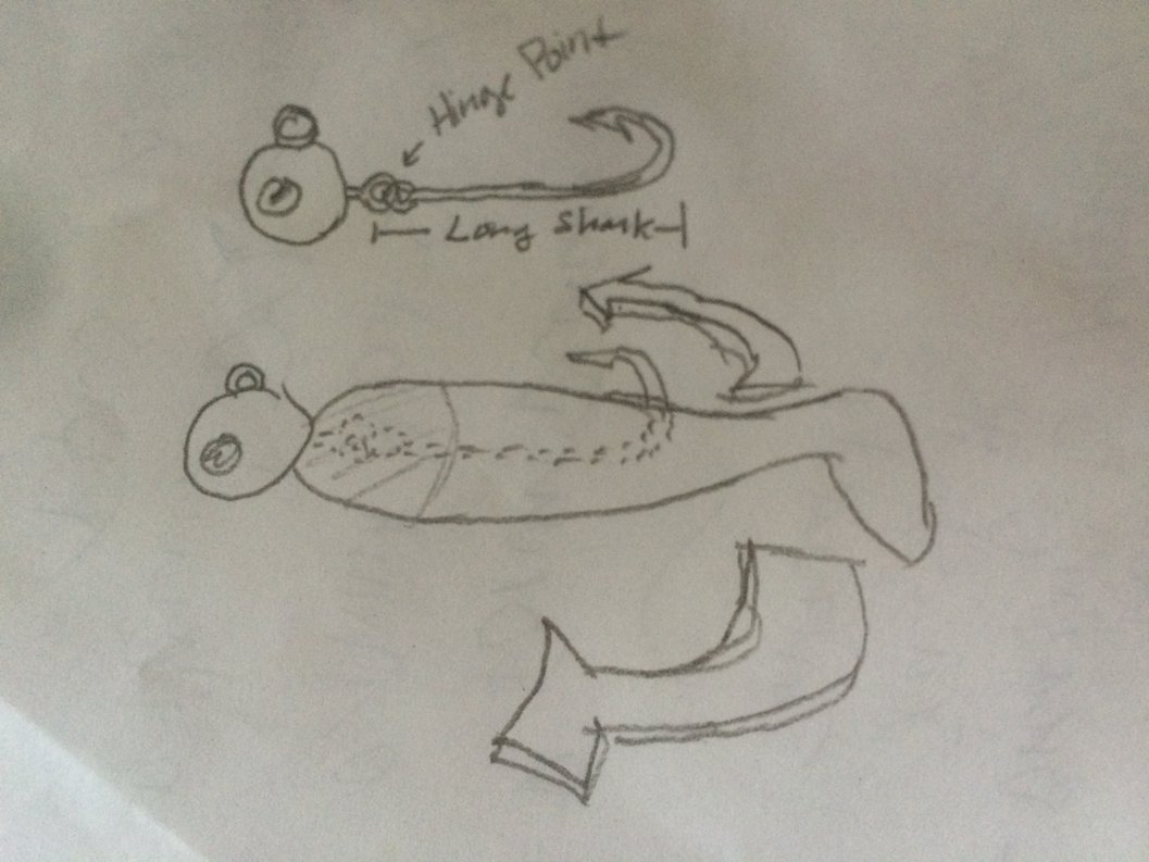 Hey KDM, your long shank idea and GuyWhoKillsDream's comments made me think of a compromise. View my awesome diagram and let me know if it makes sense. You get the full benefit of a long shank for hookups, but without hindering any of the paddle-tail action. Thoughts??? Doable??? Make some prototypes. I'd be happy to product test them for you :D