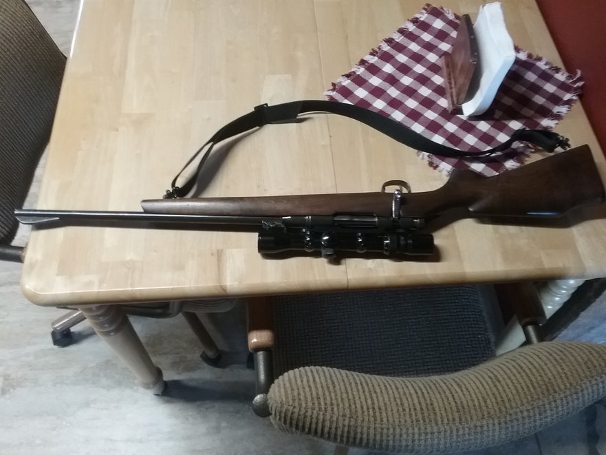 20180503_171604.jpgGuess this gun. Same thing. Type 38 6.5 Jap Arisaka sporterised years ago. I shot my first deer with this rifle over 50 years ago. My old man brought home 2 from Guadalcanal. One had the end of the barrel blown off so he sporterised it. I also have the original with bayonet but its quality looks better so its an early one. It also has the mum. Norma make cartridges with a 139 grain bullet.