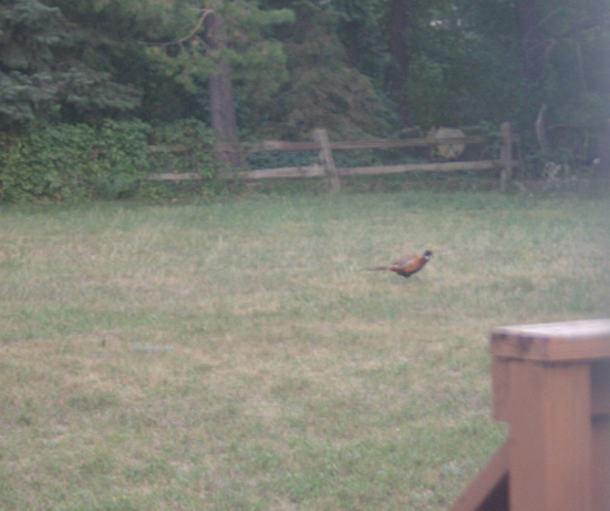 Always fun to watch them birds run around. Make sure to kill then 2 roosters so they don't kill the hen this winter.