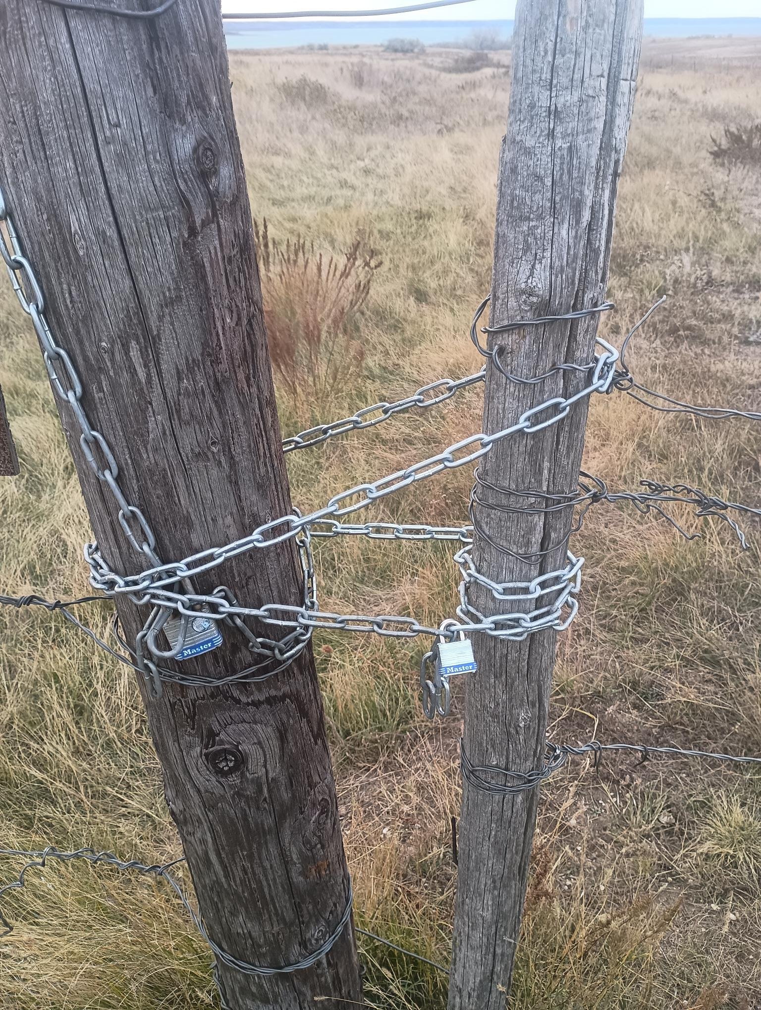 Ran into this out hunting this weekend. I'm half tempted to bring a bolt cutter and some new locks just to mess with the guy who did this. lol It is located on a section line.