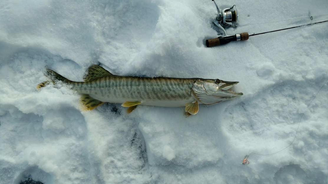 Was out on Audabon yesterday afternoon jumping around looking for fish when this guy slammed my lure in about 33ft of water. I know they've stocked the lake with them, just never thought I'd catch one through the ice! I released her right after the pictures, didn't measure it but it was about as long as the 28" rod I was using. Wish I could have got a better pic with it but I was by myself. Thought it was pretty cool!