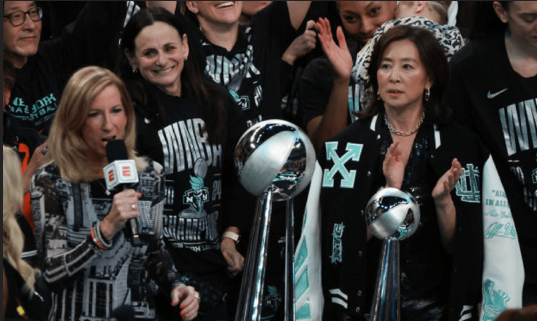 Hopefully when the Liberty and Lynx meet in the Finals this year the commissioner of the league doesn't show up in a NY City skyline dress.![]()