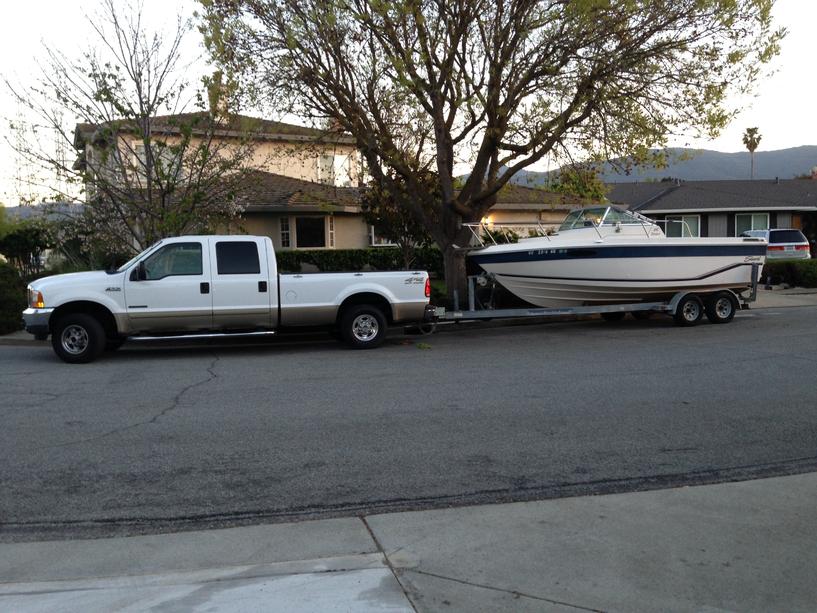 22' Seaswirl Striper made in Oregon. 351 ci Ford marine engine (45 knots the one time I opened it up in 25 years, a walk-around cuddy cabin (I wanted a walk-around because I used it for SCUBA diving and we needed to set and pull the anchor from the bow) and self-bailing cockpit (the water that comes over the bow/gunnels drains out/does not go into the bilge.)