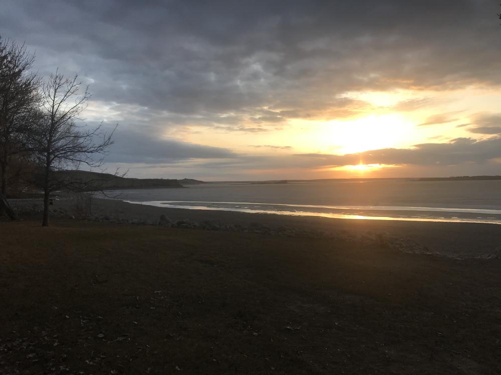 Pelican out in front of the cabin on Metigoshe.