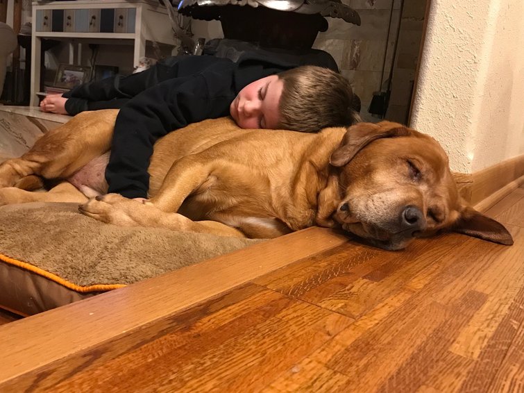 My 11 year old 130lb black lab named Macho. He likes to help himself to the kids dinner plates on our 4ft tall high top table. Although he is still in pretty good shape his hunting days are behind him as after about 20 minutes he will be walking behind you.