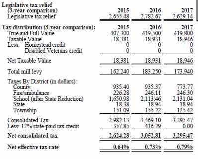 As you can see, the "Legislative Tax Relief" is still in effect this year. On this one it's $2629.14 for 2017. That's going to be painful when the legislative buy down expires.