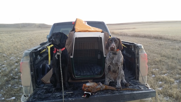 Got the dogs out today.... kind of a sad showing of only 1 bird, but if i wasn't a dumbshit n trying to take pictures of Rudy in action I'd have had a limit. He did well, didn't actually point anything but was definately getting in the mix of things. not sure why but one of the pics is rotated and i can't get it to stay the right way