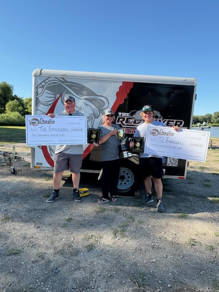 Congratulations to Alan, Lisa and Zach Erickson on their dominating win at the Catfish Capital Challenge at Drayton this past weekend. They weighed a tournament record 92.72 pounds of fish over two days earning an $11,000 paycheck.