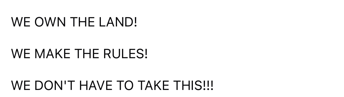 -yelling at them they have every right to be on their private property and there is 0 reason it all needs to be “posted” without being posted.. (all 3 states that surround us are this way and and the 2 provinces that touch us if I remember correctly)