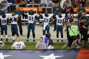 I have a hard time believing the spectacle of the anthem before an NFL game is respecting anyone considering they charge the military/taxpayer to do it in the first place. It's a paid service the NFL offers. Time for the government to stop being a customer. A dozen years ago people looked at a flag in the distance if you were in the staduim, they played the Banner, and that was the end of it. People even shouted the wrong words at the end of it and everyone thought it was so cute. Anyone watching on tv didn't have a clue. If Trump or anyone else gave a shit they would remove the NFL's antitrust status that they shouldn't have in the first place and this could all be about football again.