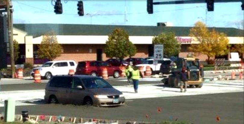 Witnesses say a man drove through some fresh concrete on 13th Avenue in Fargo this afternoon. They say the van was coming from Olive Garden, drove right past the cones blocking off the work site and got stuck.