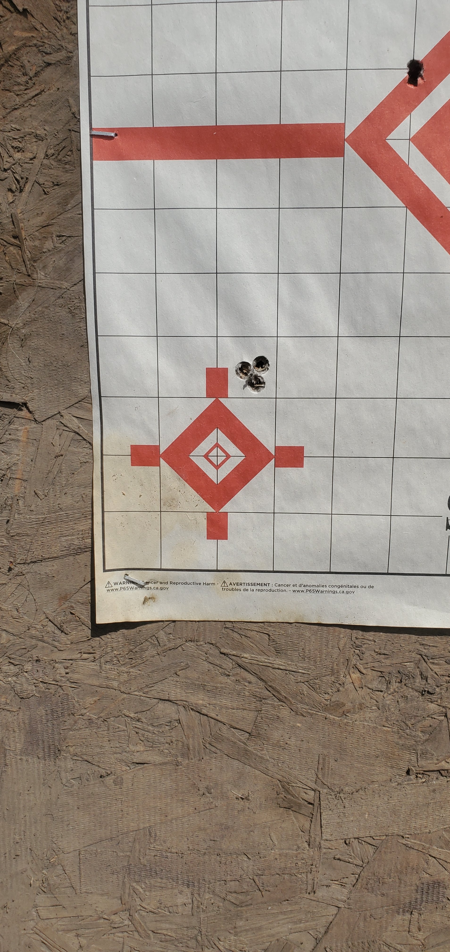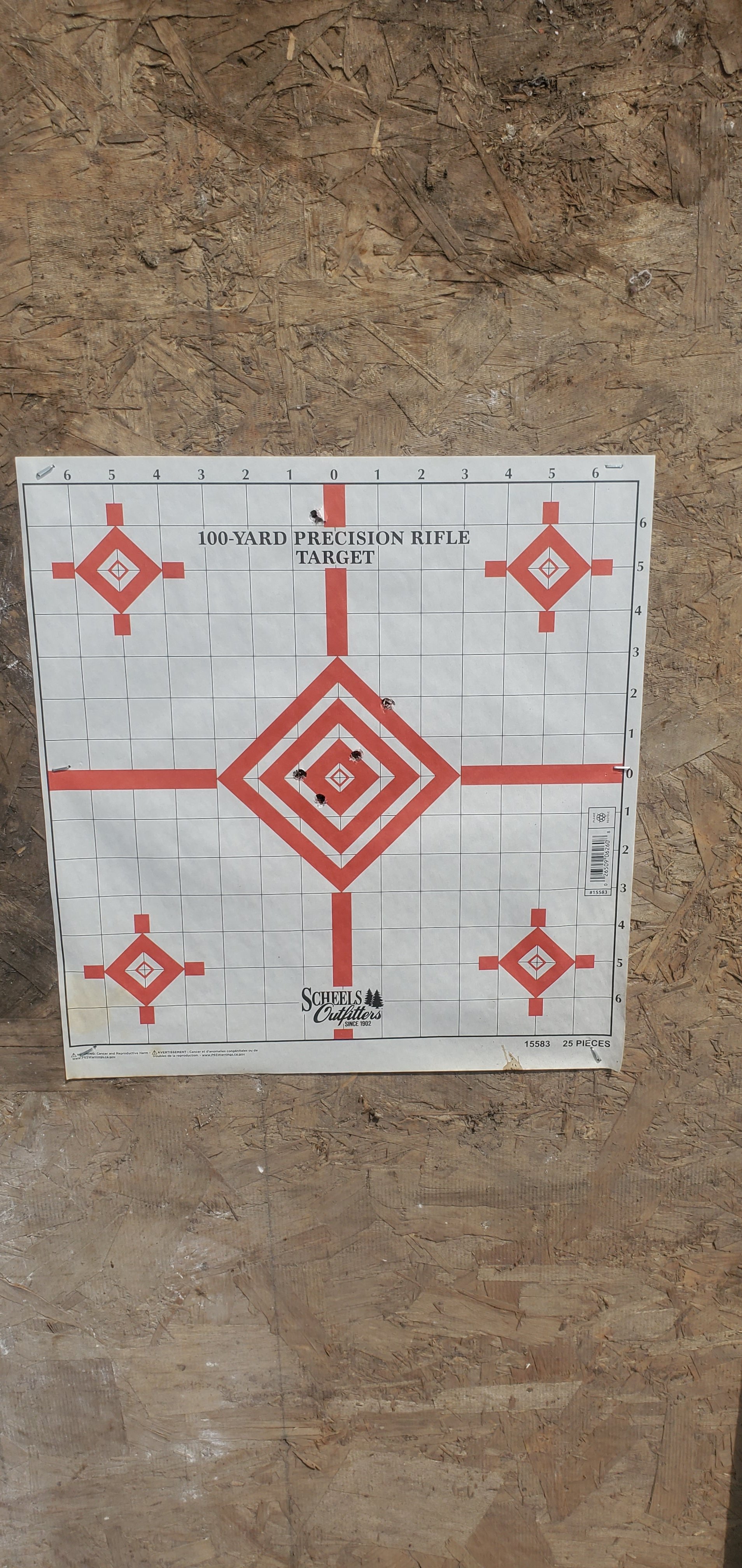 Top target 220 gr Berry you can see first shot top of target. Second 4.5 down and 1.5 right. Then 3rd 4th and 5th shot.