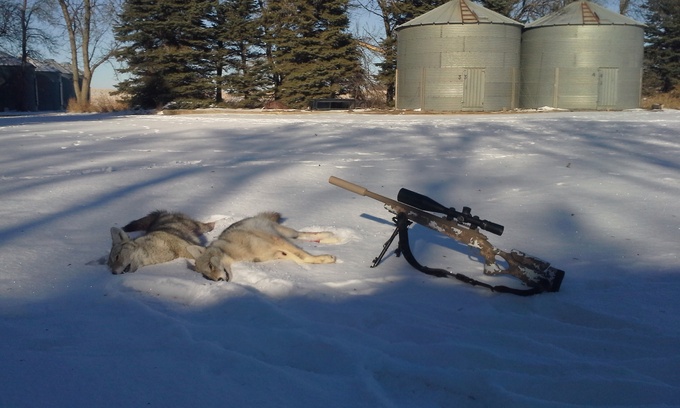 12 were called in during daylight hours the rest were shot at night and all were called in with mouth calls at night. Ecallers worked for about a month after that it was a warning to the dogs and nothing worked except mouth calls. All were shot with my CR MOD0 built by Chad Dixon at LongRifles INC. it helps that we were in the same company in the Marine Corps for my first 4 years, we were the only guys from ND in our company so naturally we've been good friends for 25 years.79 thats awesome. Did you call them all in?