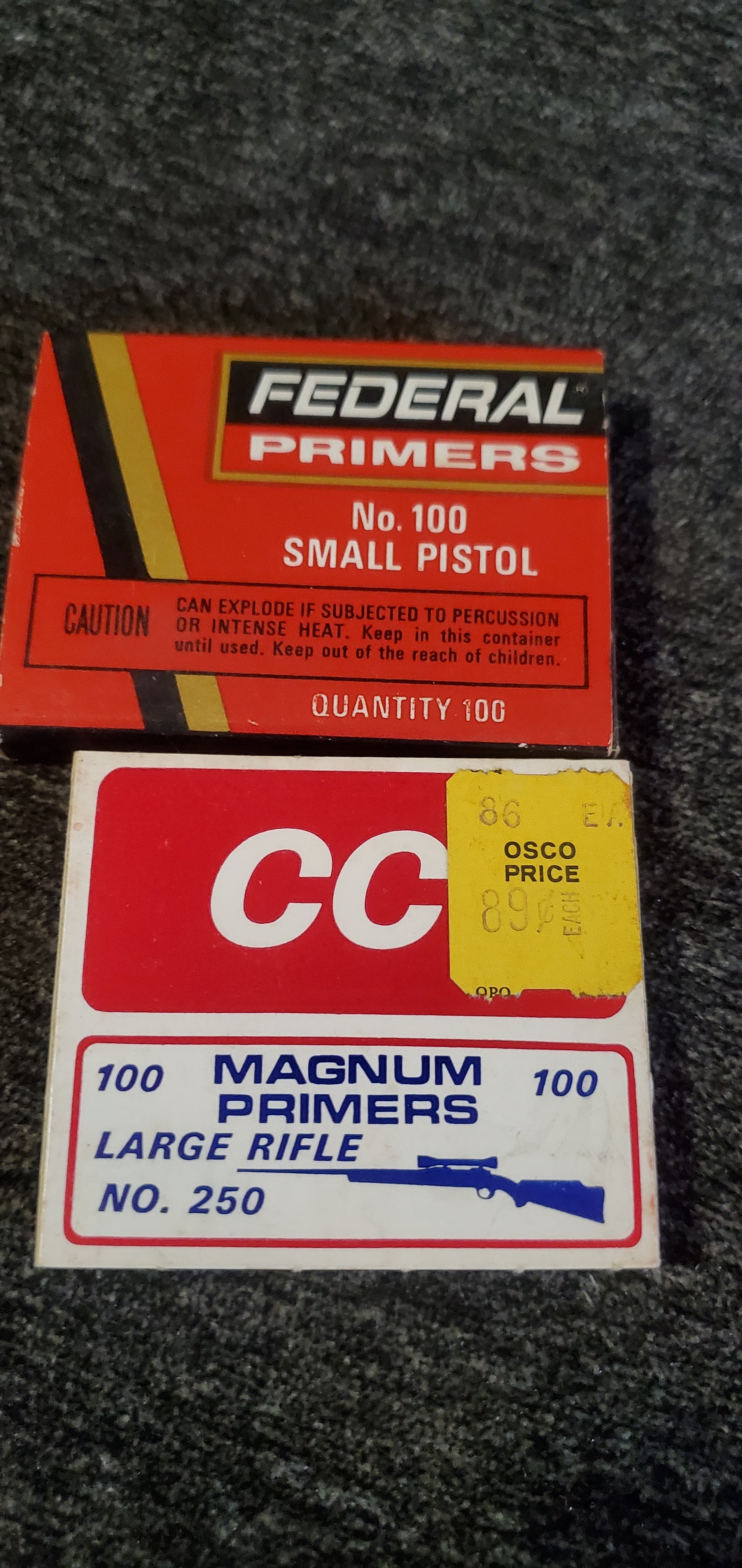 I have been loading for over 47 or 48 yrs. Still using the same RCBS Rock Chucker I purchased back then. Primers were 1.50 per hundred and the cheapest I remember powder was 13.00 or 14.00 a lb. I would go to Sodak sport in Aberdeen and buy powder. He would put it in plastic pop bottles as he purchased it in 30 lb kegs. Back then there was no hoardings like now as the shelves were never empty. The popular powders were, 4064, 3031, 4831, 4350, 4227, 4198. I look at old reloading manuals and they show only 7 or 8 different types of powder for that cartridge and only 3 to 5 types of bullets.That must have been quite a while ago. I started reloading 10 years ago, and the cheapest I remember is like $30-$35 per brick of primers.
