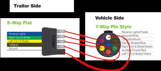 So, I have a few lights out on the trailer but they're just side marker lights. Not real worried about it as I will get to them this winter. Tail lights and reverse lights work. I took for granted that brake lights and turn signal lights were working. Well, they aren't. I took a peek at my pins coming from the trailer. It looks like one got dragged on some pavement at one point and I suspect it's not making contact anymore. In my search for a 7 wire to 5 pin connector, I'm coming up empty handed. Can any of you electrical guru's point me in the direction of how to tie a 5 pin connector?