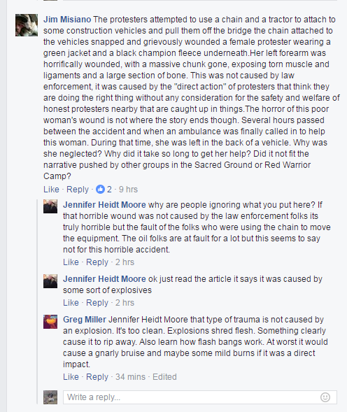 Yeah I have heard every excuse there is defending why they didn't participate in the planning of this. I believe if they did participate this would not be happening right now. They would have chosen a different route. It still comes down to $$ and DAPL has lost a ton of money with the delays and current situation. If these protests happened a year ago or if there was input from SR early on, the financials would have led them to a reroute.