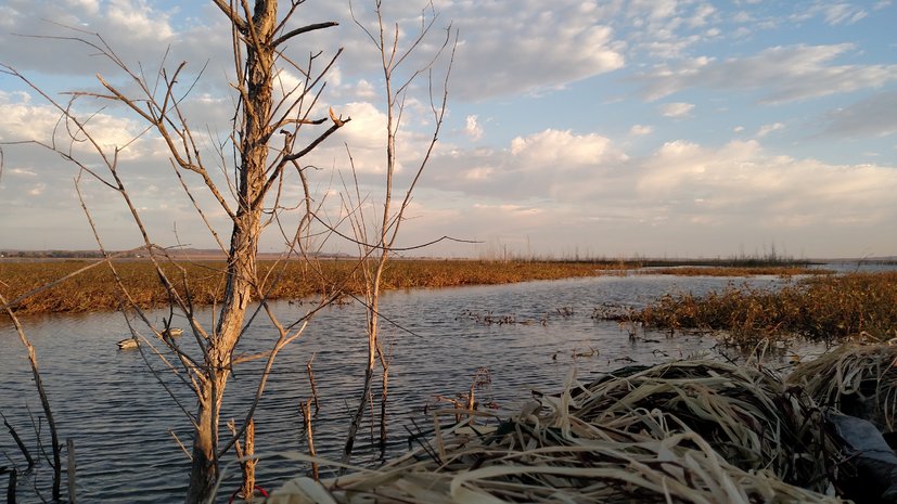 It doesn't work that way and what planet have you been on over the last few years? Please tell me your new to the area because if you have been here for years and still know so little about this system is almost criminal. This lake has a huge problem with over producing predators and loosing it's bait fish that leads to stunted growth and outright death and population crash. It's a cycle that it has gone through for years and only now do we have a bit of hope to break it with the huge rise in warm water bait fish. Us nd guys need to appreciate the huge marsh that has formed from the badger bay/fort rice up to the gun range. That sucker is unbelievable good at raising baby fish of all types and is a big part of the reason why ND side is improving faster than the area down by the dam. Hell in this pic I'm in 6 feet of water and the nearest dry ground is the hills way off in the distance. The weeds you see are in anywhere from two to seven feet of water and covers thousands of acres including secondary areas of them down closer to cannonball.