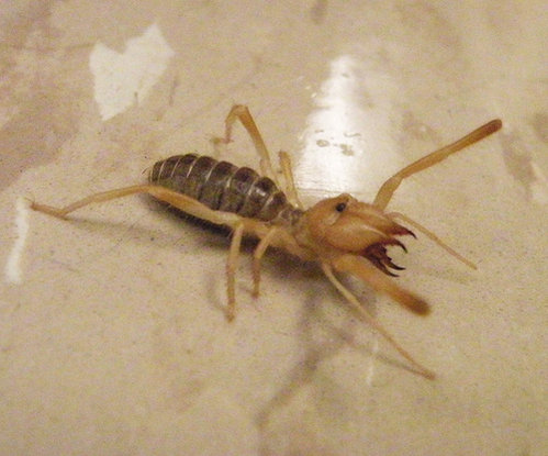 Looks like a Camel Spider...its in the scorpion family I believe. Seen HUGE ones over in Afghanistan and other "undisclosed locations" overseas. They will stand their ground and chase you LOL